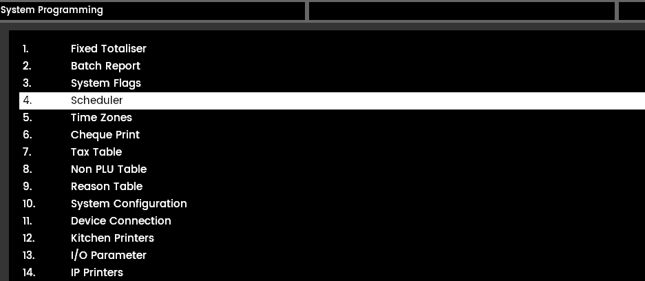 on the till go into program mode > all prog> System Programming> Scheduler.